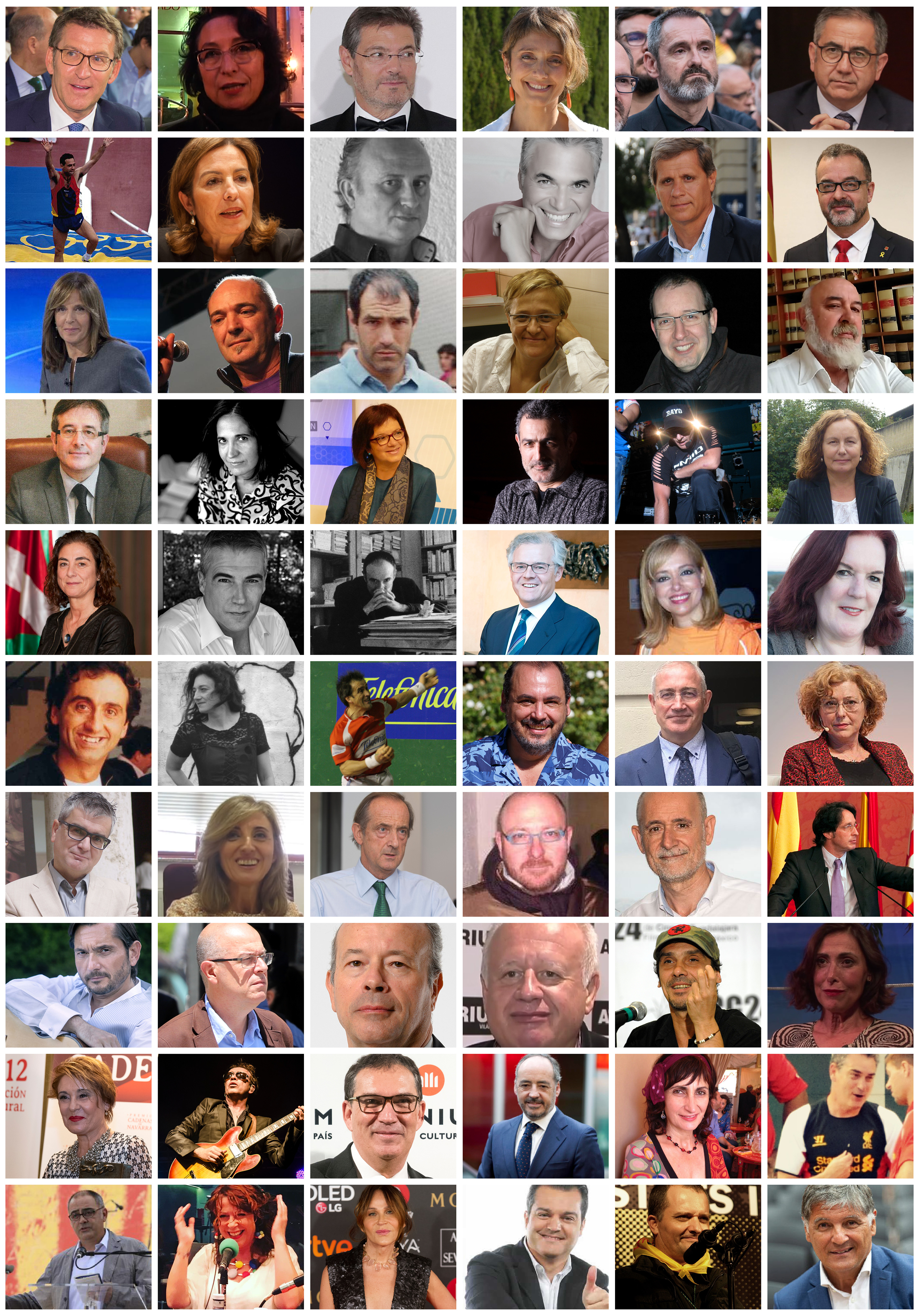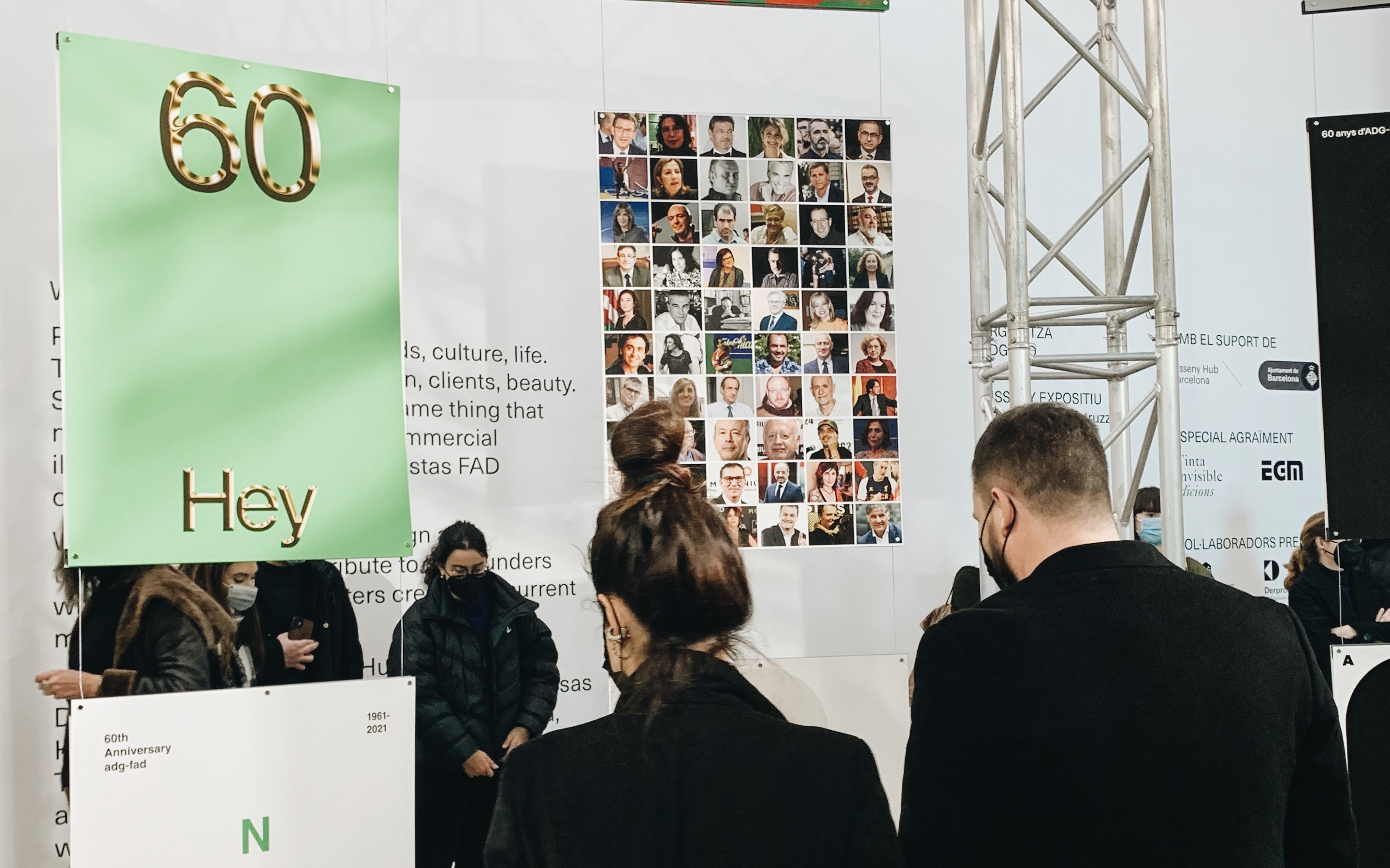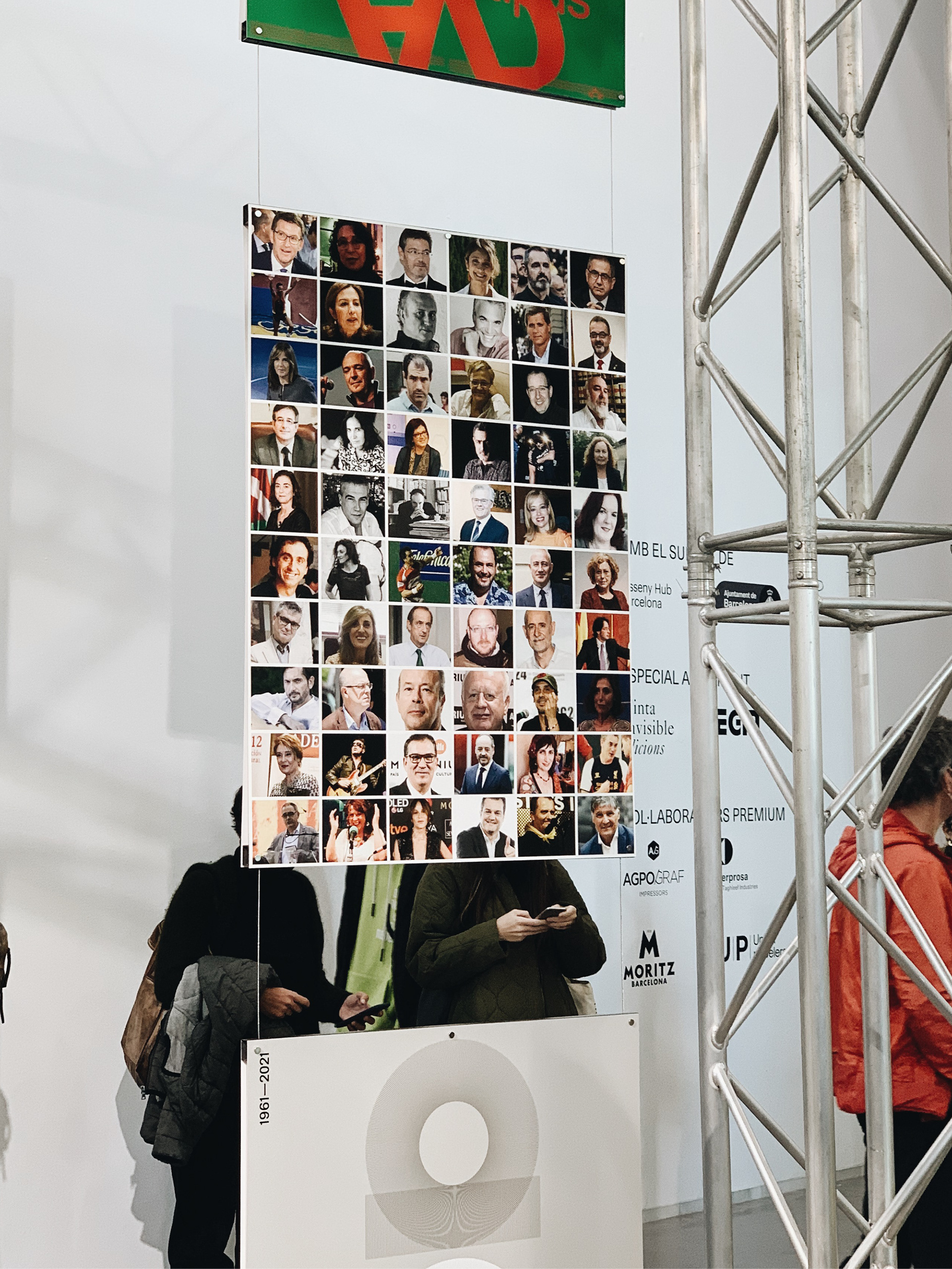 El cartell es composa per 60 fotos de persones espanyoles nascudes el 1961, any de fundació de l’ADG.
