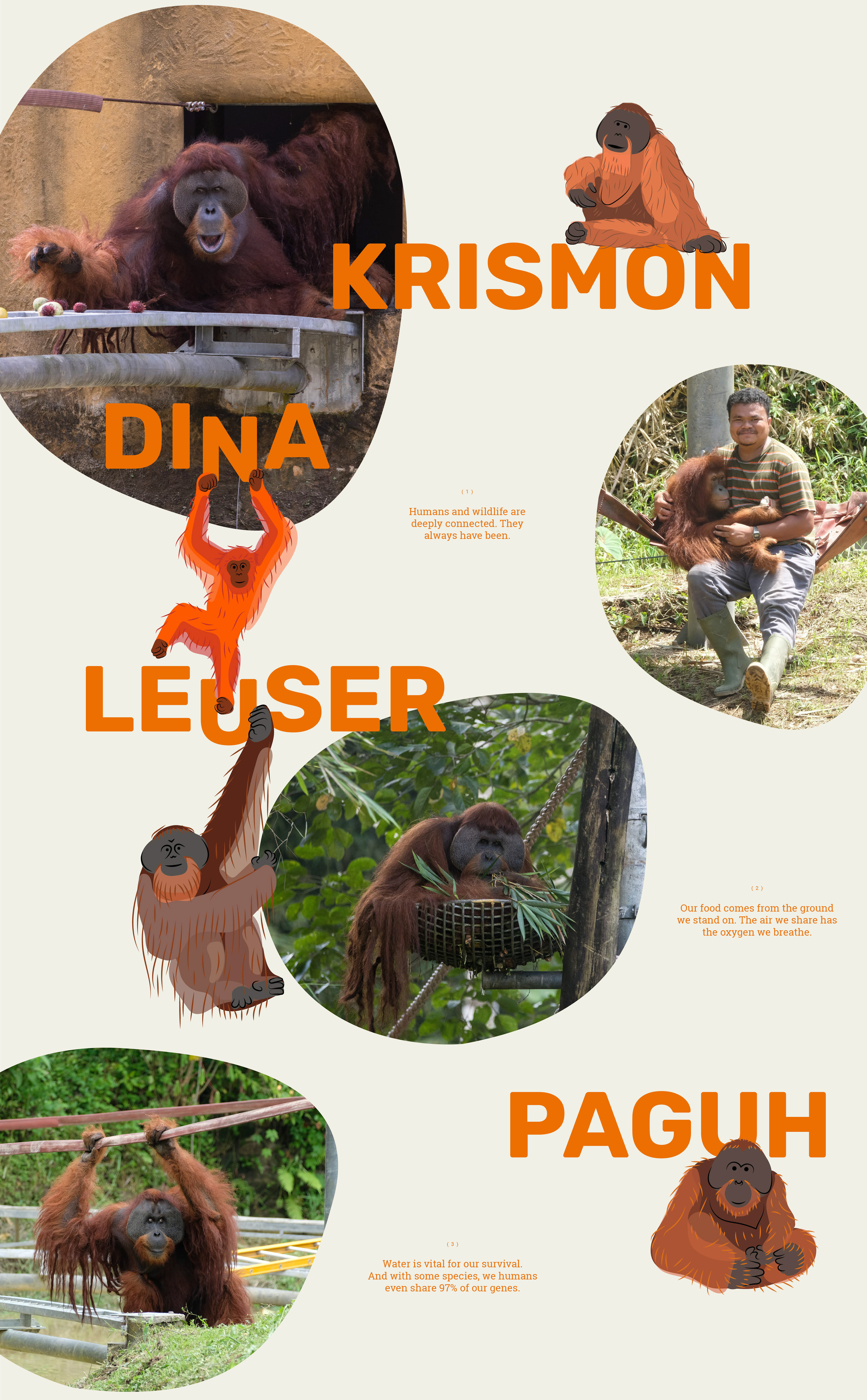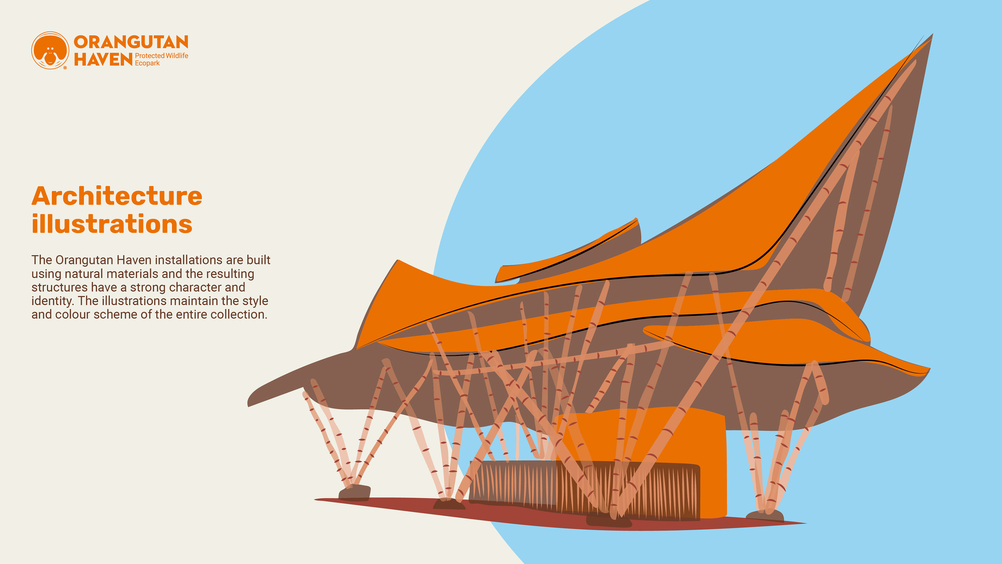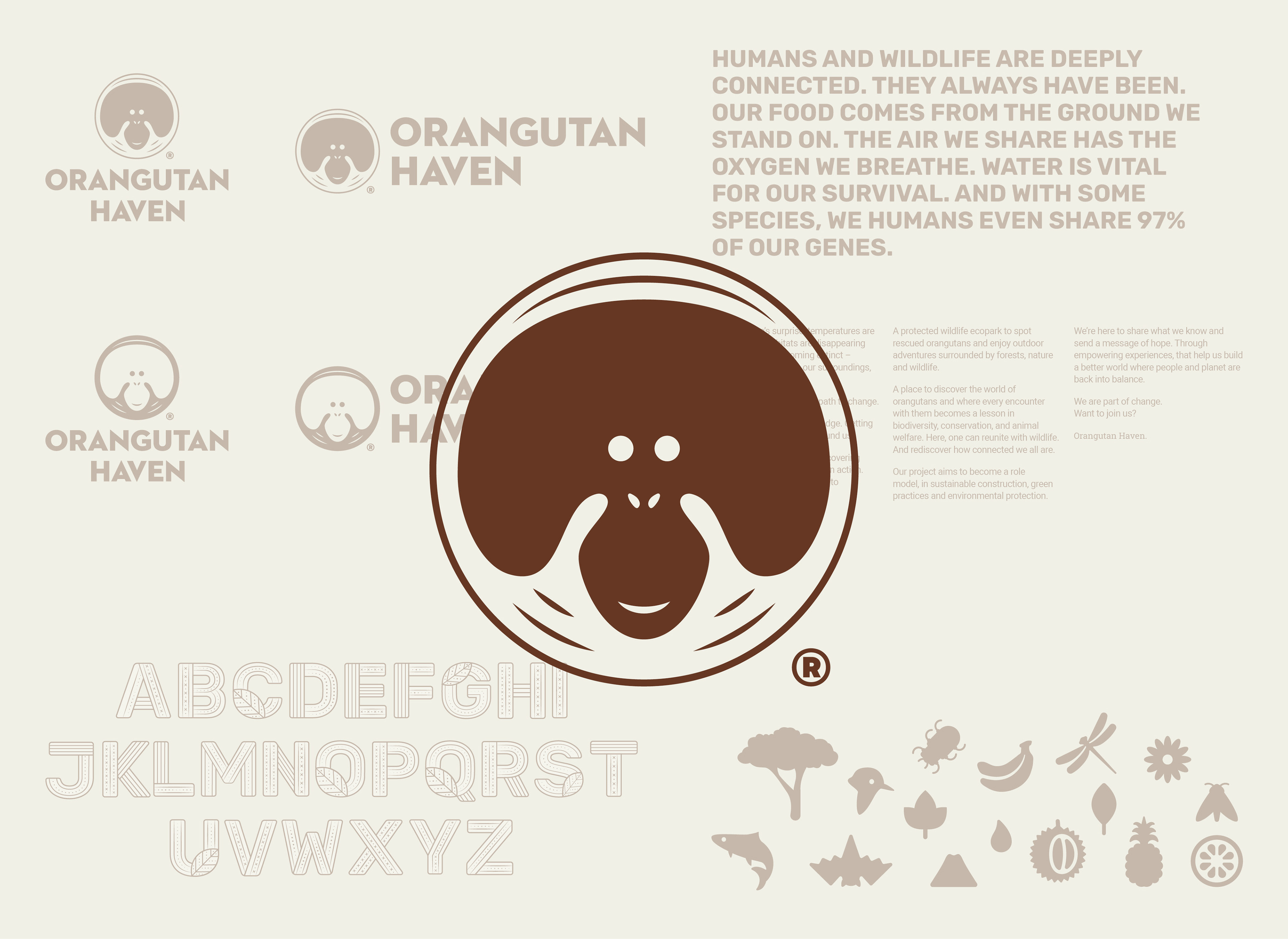 Redesign of the logo and visual system for Orangutan Haven, Protected Wildlife Ecopark, in Sumatra, Indonesia.