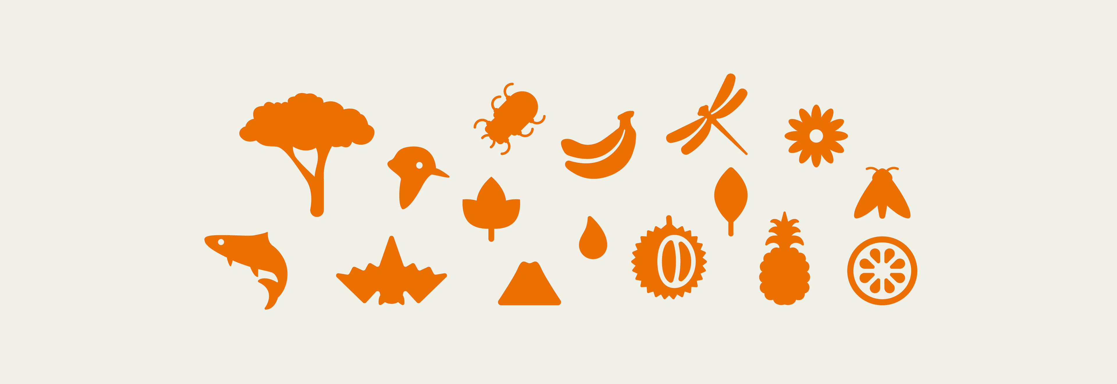 Organic shapes inspired by the natural habitat help organize the compositions and give rhythm to the identity.